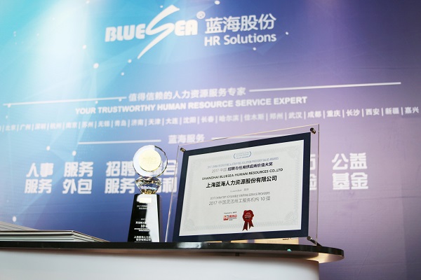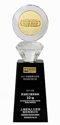2017年7月13日,在人力資源智享會(huì)(HREC)舉辦的“2017中國(guó)招聘與任用供應(yīng)商價(jià)值大獎(jiǎng)”頒獎(jiǎng)典禮上,經(jīng)過(guò)評(píng)委會(huì)專(zhuān)家層層選評(píng),上海藍(lán)海人力資源股份有限公司憑借專(zhuān)業(yè)的服務(wù)、優(yōu)質(zhì)的品牌口碑和影響力,被評(píng)為“2017中國(guó)靈活用工服務(wù)機(jī)構(gòu)10強(qiáng)”企業(yè)。該獎(jiǎng)的獲得凸顯了我司在人力資源服務(wù)領(lǐng)域的突出地位。藍(lán)海股份副總裁兼董事會(huì)秘書(shū)李宏達(dá)先生上臺(tái)接受頒獎(jiǎng)。