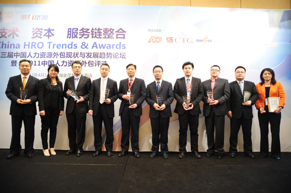 由人力資源行業(yè)專業(yè)媒體《第一資源》主辦的第三屆中國人力資源外包服務(wù)業(yè)現(xiàn)狀與發(fā)展趨勢論壇暨2011中國人力資源外包評選的頒獎典禮于2011年4月14日在上海金茂君悅大酒店隆重舉行。本次論壇吸引了近30家全國知名人力資源服務(wù)商、20多家媒體和近百位企業(yè)HR管理者相聚上海共話人力資源外包業(yè)的趨勢和變革。
