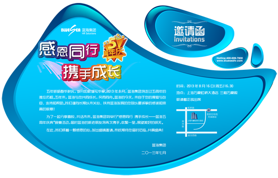 五年砥礪春華秋實,歲月如歌譜寫華章。2013年8月,藍海集團將走過五周年的難忘歷程。五年來,藍海與您共同成長,風雨同舟。藍海的今天,來自于您的厚愛與包容、支持和幫助。我們謹向長期以來關心、扶持藍海發(fā)展的您致以最誠摯的感謝和崇高的敬意!