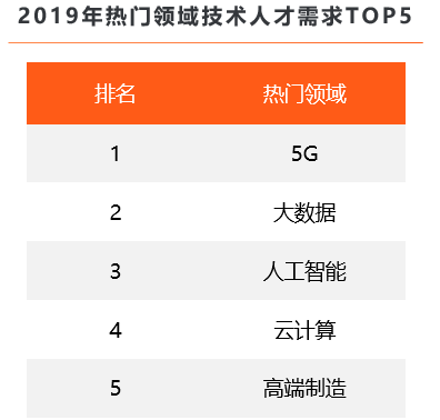 近日,獵聘大數據顯示,在2019年熱門領域技術人才需求TOP5中,5G領域位居第一,其對技術人才的需求高于大數據、人工智能、云計算和高端制造。5G應用涉及的領域極為廣泛,其發(fā)展需要技術、研發(fā)力量的大力支持,因此對中高端技術人才的需求十分旺盛。