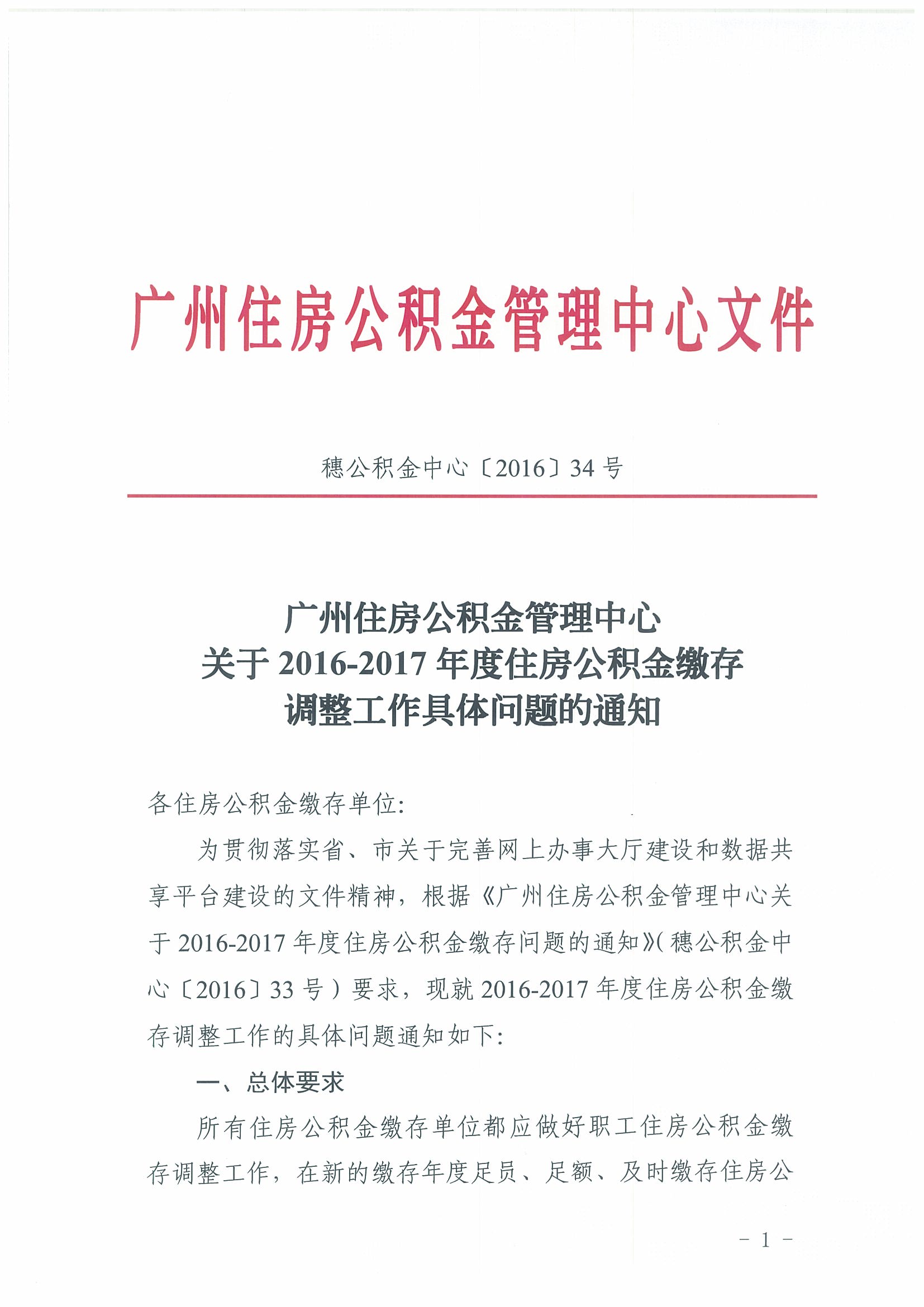 廣州市—廣州住房公積金管理中心2016-2017年度住房公積金繳存調(diào)整工作具體問題的通知