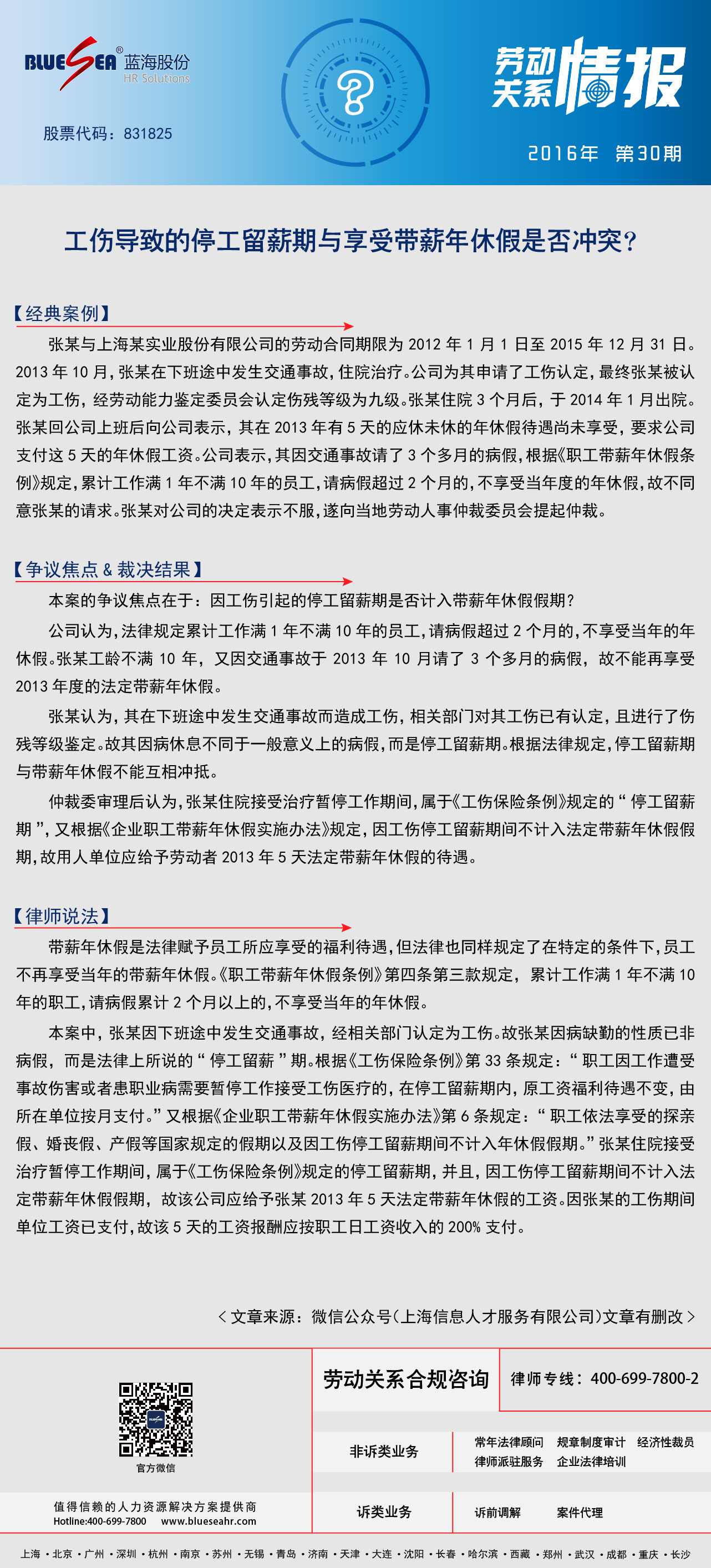 工傷導(dǎo)致的停工留薪期與享受帶薪年休假是否沖突?