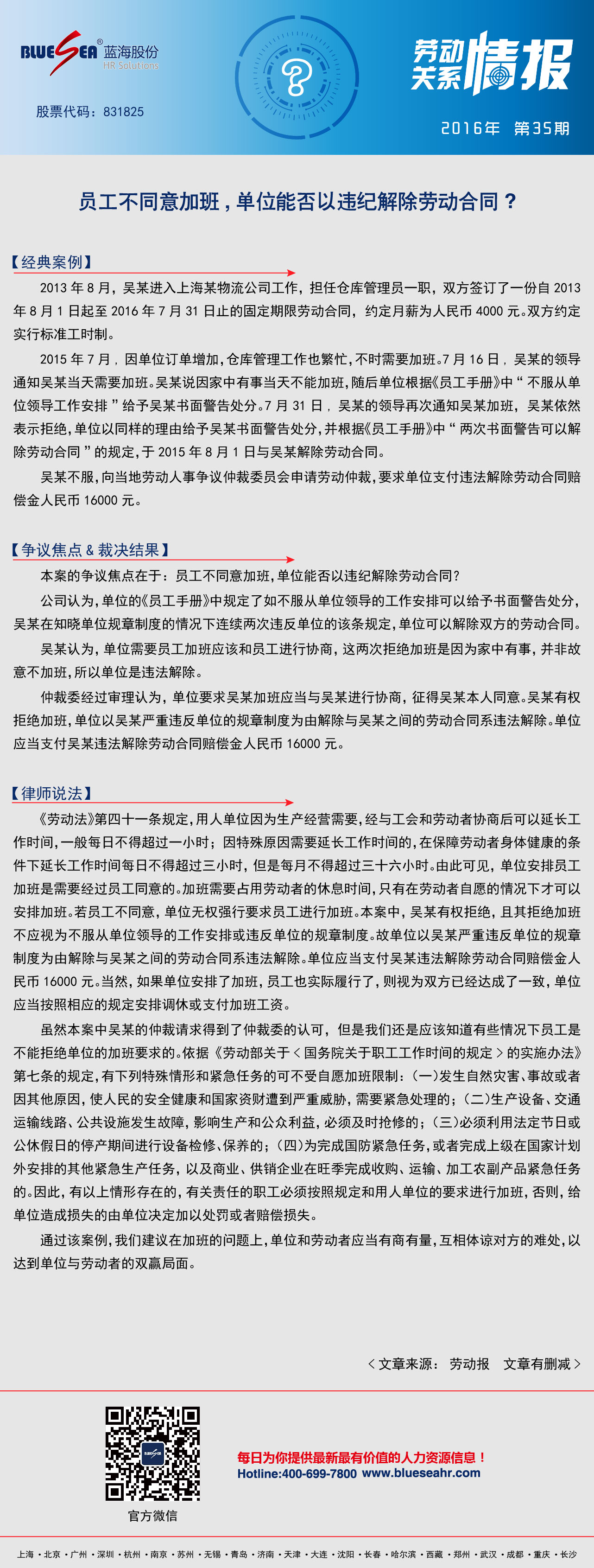 員工不同意加班,單位能否以違紀(jì)解除勞動合同