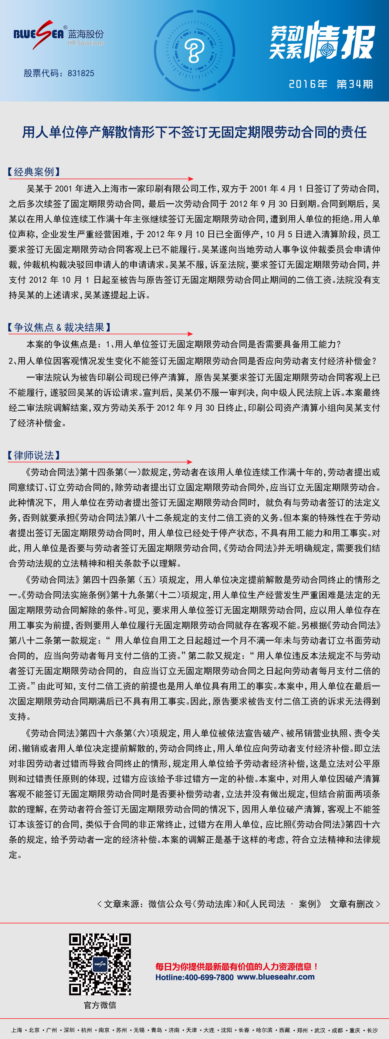 用人單位停產(chǎn)解散情形下不簽訂無固定期限勞動合同的責(zé)任