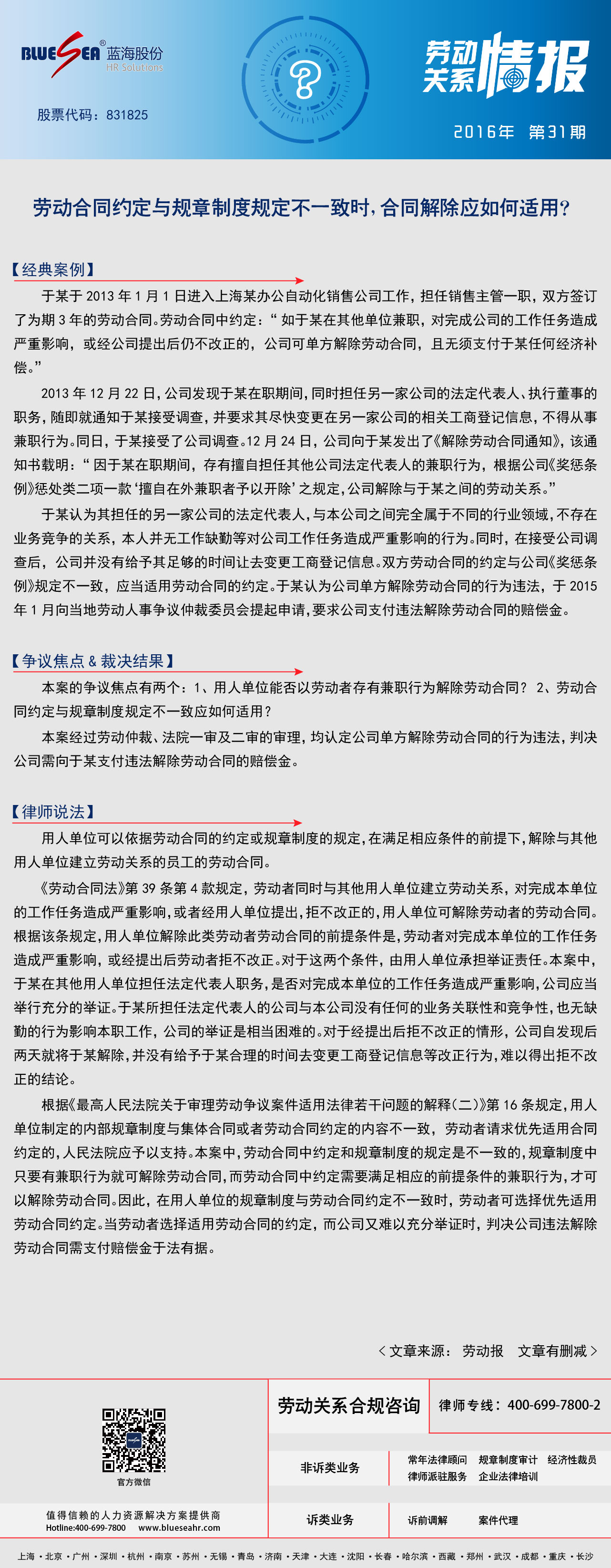 勞動合同約定與規(guī)章制度規(guī)定不一致時,合同解除應(yīng)如何適用?